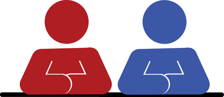 座っている2人のシルエット 座る,腕組み,コメンテーター,カウンター,聞く,相談,プレゼンテーション,机,話す,会議のイラスト素材