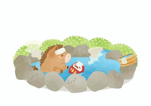 温泉クマ クマ,温泉,旅行,休日,浴衣,桶,観光のイラスト素材