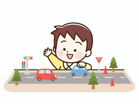 ミニカーで遊ぶ男の子 子供,男の子,園児,幼児,幼稚園,保育園,人物,車,自動車,乗り物のイラスト素材
