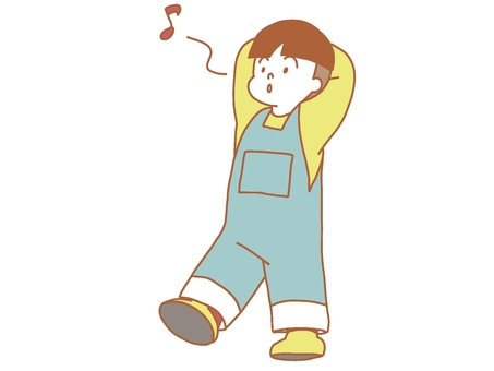 口笛を吹く男の子 口笛,吹く,音符,歌,男の子,少年,子供,人,オーバーオール,かわいいのイラスト素材