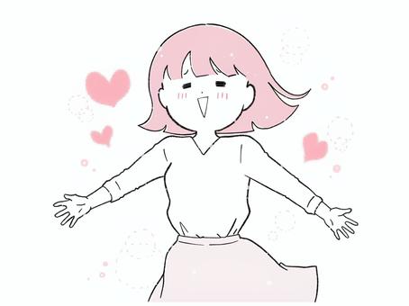 とっても好きが溢れている女 両手,広げる,人物,女性,好き,恋,愛,ハート,ときめき,元気のイラスト素材