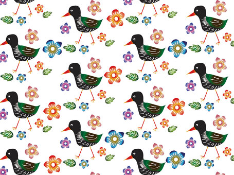 沖縄のヤンバルクイナとハイビスカス 沖縄,ヤンバルクイナ,ハイビスカス,パターン,包装紙,花,可愛い,鳥,明るい,羽のイラスト素材