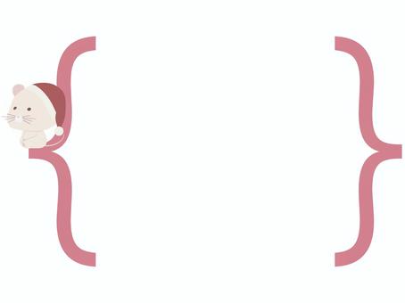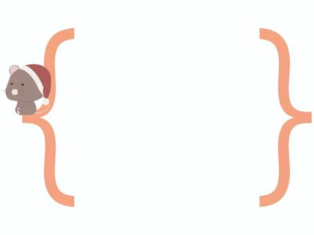 波括弧とサンタ帽をかぶった茶色いねずみ