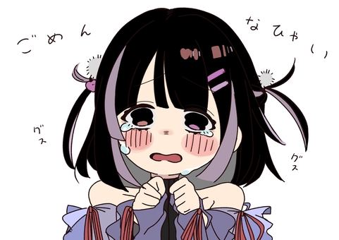 泣き顔の黒髪ツインテールの女の子 泣き顔,黒髪,ツインテール,女の子,表情のイラスト素材