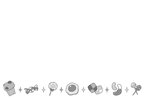 ハロウィンお菓子が並ぶキラキラ飾り枠白黒