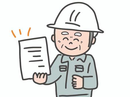シニア現場作業員と書類 男性,シニア,ベテラン,おじいちゃん,現場,作業員,工事,書類,提出,資料のイラスト素材