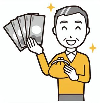 ニット中年男性(黄)-209-全身 財布,おじさん,男性,中年,お父さん,パパ,シニア,ミドルエイジ,人物,かわいいのイラスト素材