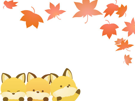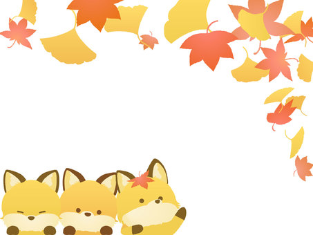 ひょっこりキツネと紅葉舞うフレーム 狐,イチョウ,モミジ,舞う,秋,葉,動物,フレーム,紅葉,アニマルのイラスト素材