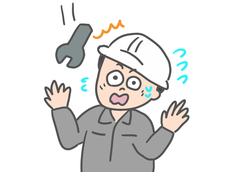 スパナ落下 スパナ,工具,落下,危険,びっくり,驚き,労災,怪我,ヒヤリハット,落ちるのイラスト素材