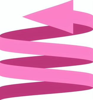 螺旋矢印ピンクリボン左向き 矢印,パステル,リボン,左向き,螺旋,グルグル,巻きあがり,ピンクのイラスト素材