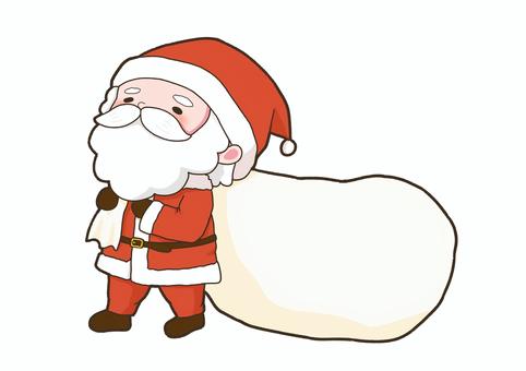プレゼントの袋をもって空を見上げるサンタ サンタ,プレゼント,クリスマス,運ぶ,見上げる,かわいい,ゆるいのイラスト素材