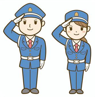 敬礼する男性・女性警備員B_25 警備,警備員,警備会社,ガードマン,イラスト,人物,男性,女性,男女,求人のイラスト素材