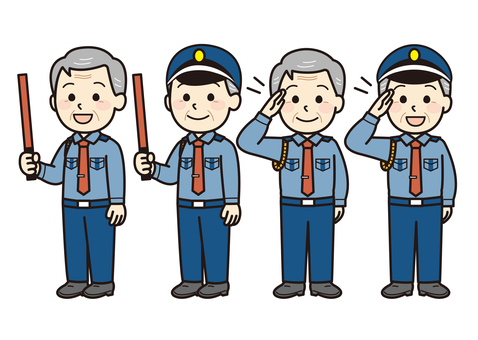 警備員 シニア男性 警備員,警備,ガードマン,交通整理,シニア,おじいさん,中年,老人,年寄り,セキュリティーのイラスト素材