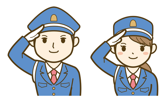 警備員男性2人(敬礼) 警備員,守衛,男性,男の人,敬礼,派遣社員,契約社員,警備,正社員,守衛業務員のイラスト素材