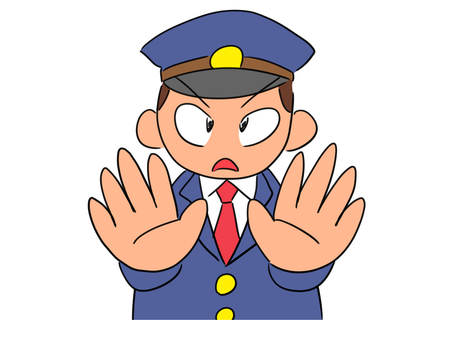 制止する警察官のイラスト ストップ,制止,注意,警察官,警備員,車掌,手のひら,男性,制服,帽子のイラスト素材