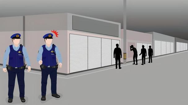 警察官 商店街で強盗を発見 警察官,警察,おまわりさん,見回り,パトロール,巡回,捜査,商店街,店,建物のイラスト素材