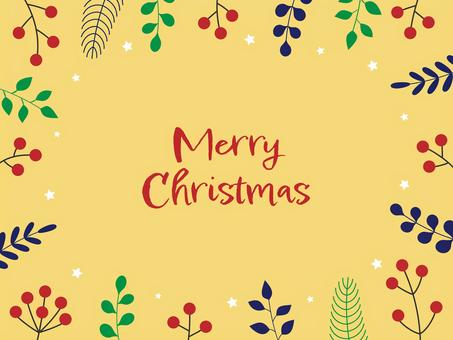 葉とオーナメントのクリスマスフレーム/黄
