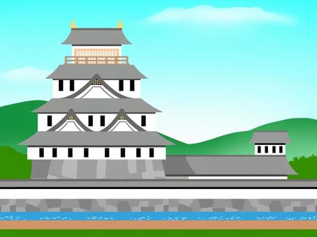 兵庫県 姫路城 背景付き 姫路城,城,姫山城,白鷺城,平山城,兵庫,兵庫県,姫路市,三大平山城,世界文化遺産のイラスト素材