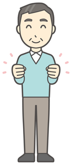 ニット中年男性-415-全身 ガッツポーズ,おじさん,男性,中年,お父さん,パパ,シニア,ミドルエイジ,人物,かわいいのイラスト素材