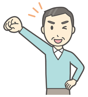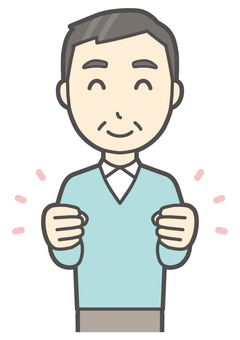 ニット中年男性-134-バスト ガッツポーズ,おじさん,男性,中年,お父さん,パパ,シニア,ミドルエイジ,人物,かわいいのイラスト素材