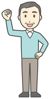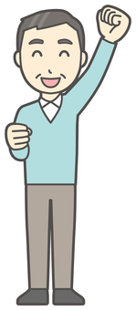 ニット中年男性-135-全身 ガッツポーズ,おじさん,男性,中年,お父さん,パパ,シニア,ミドルエイジ,人物,かわいいのイラスト素材