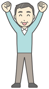 ニット中年男性-141-全身 ガッツポーズ,おじさん,男性,中年,お父さん,パパ,シニア,ミドルエイジ,人物,かわいいのイラスト素材