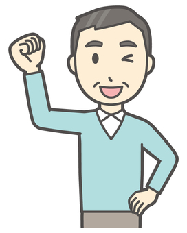 ニット中年男性-414-バスト ガッツポーズ,おじさん,男性,中年,お父さん,パパ,シニア,ミドルエイジ,人物,かわいいのイラスト素材