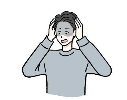 頭を抱えて困っている、パニックになる等 困った,頭,抱える,焦る,パニック,どうしよう,しまった,悩む,疲れた,困惑のイラスト素材