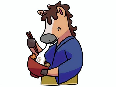 馬がお雑煮を食べるお正月イラスト 午年,馬,お雑煮,正月,お正月,干支,年賀状,食事,かわいい,デフォルメのイラスト素材