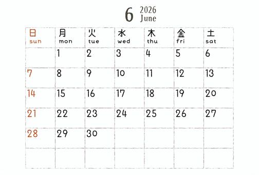 2026年6月カレンダーB