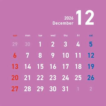 2026カレンダーC1 12月 244 カレンダー,2026年,12月,師走,december,令和8年,日曜始まり,スケジュール,1年,月のイラスト素材