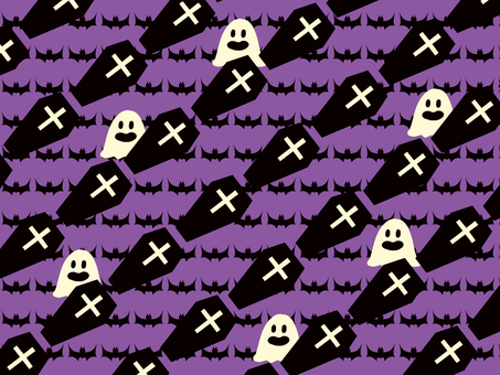 おばけと棺と蝙蝠のハロウィン背景 ハロウィン,10月,万聖節,おばけ,秋,紫色,黒,蝙蝠,イラスト,手描きのイラスト素材