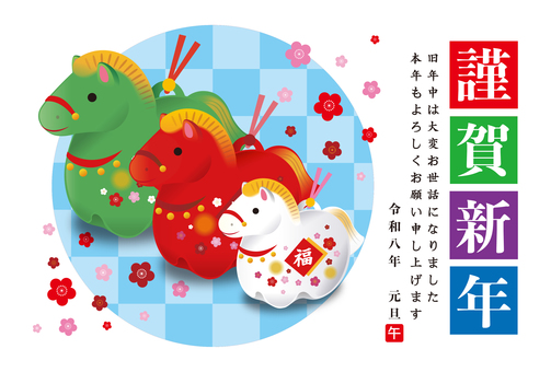 2026年 午年用年賀状素材35 午年,年賀状,テンプレート,年賀はがき,馬,午,馬年,年賀,お正月,正月のイラスト素材