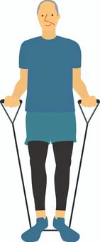 0090シニア運動チューブおじいさん男性 高齢者,チューブ,運動,シニア,エクササイズ,スポーツ,健康,ウォーキング,男性,おじいさんのイラスト素材