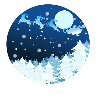 雪が降る夜の森とサンタクロース クリスマス,冬,雪,サンタ,トナカイ,森,ブルー,円,メルヘン,ソリのイラスト素材