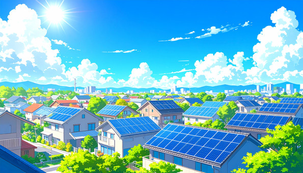 ソーラーパネルの家々