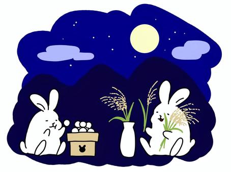 月見をするウサギのイラスト02