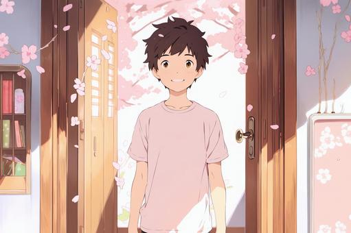 桜が見える部屋と男子