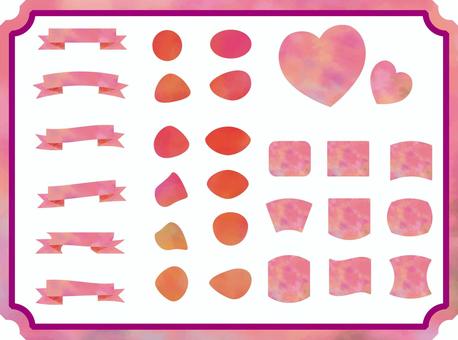 水彩テクスチャーの図形とフレーム 桃色