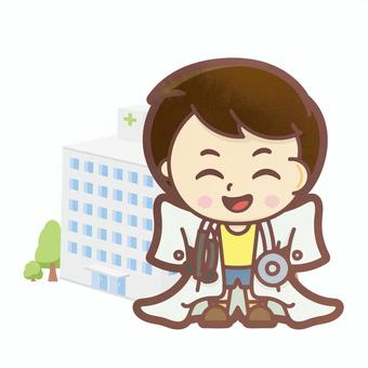 大人の白衣を羽織った男の子