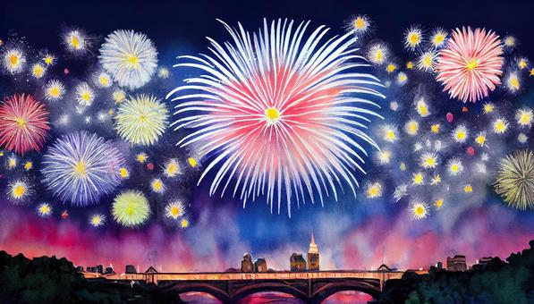 水彩風花火と星空背景