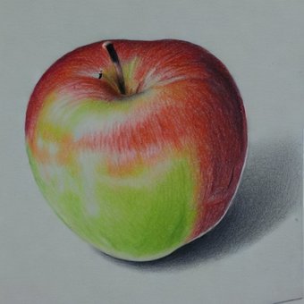 りんご、色鉛筆画