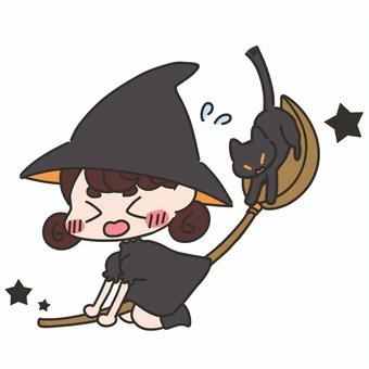 大慌てで飛ぶ魔女の女の子