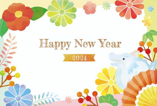 年賀状 咲き乱れる梅2 横書き 文字あり