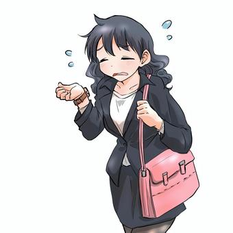 困り顔で腕時計を見ているOL