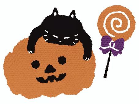 ハロウィンカボチャと黒猫とキャンディ