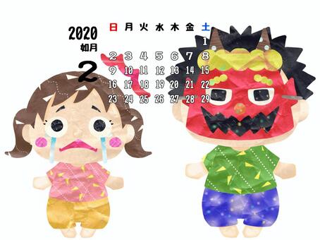 2月カレンダー 鬼のお面で妹を泣かす兄