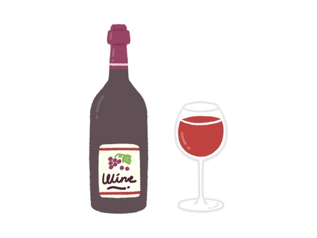 11月(ワイン、ボトル、グラス、紫のブドウ)