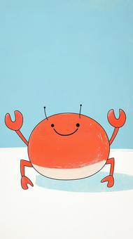 水色背景と白い砂浜に佇む愛らしいカニ