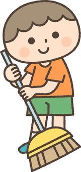 ほうきで掃除をする子供